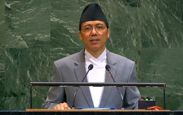 He reaffirmed Nepal’s unrelenting faith in multilateralism while underscoring the UN and its Charter as a bedrock of Nepal’s foreign policy. Thapa highlighted the contribution made by Nepal over the seven decades since it joined the United Nations in 1955 to global peace, promotion of human dignity, and sustainable development.