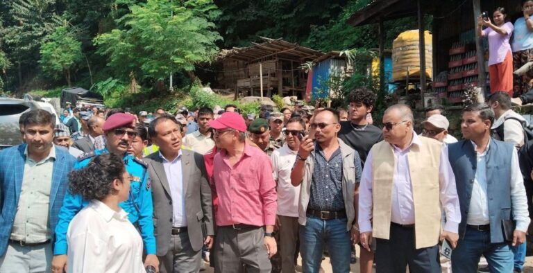 Following a field inspection of areas affected by recent floods and landslides in Ilam today, the Minister stated that the government stands with the citizens hit by the disasters. “Prompt relief and long-term, durable reconstruction efforts will be carried out,” he said. The Minister visited Rong Rural Municipality, Suryodaya Municipality, and Ilam Municipality, and interacted with locals from Ilam, Sandakpur, Maijogmai, and surrounding settlements. He also inspected the damaged road infrastructure.