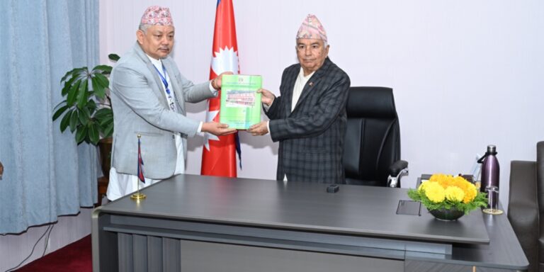 Commission Chair Ram Bahadur Thapamagar presented the document before the Head of the State amidst a programme held at the Office of the President, Shital Niwas.(RSS)